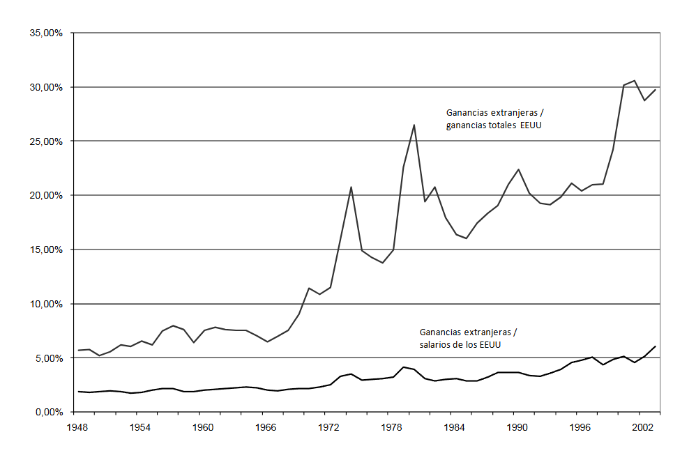 – Que estas ganancias incluyen tanto las realizadas en países del centro como de la periferia. Es decir, las cifras contabilizadas como «ganancias extranjeras» incluirían también las generadas en Canadá, Europa, y otros países considerados como zonas del centro imperialista.